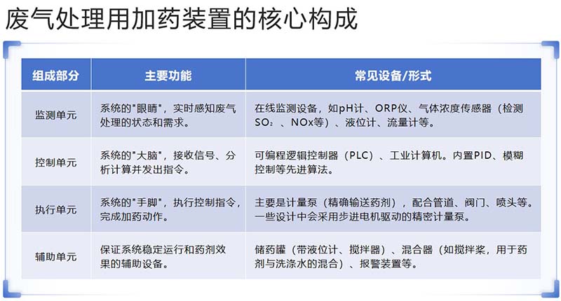 廢氣處理用加藥裝置,簡單來說就是向廢氣處理設(shè)備中精準(zhǔn)、自動(dòng)地投加化學(xué)藥劑的一套設(shè)備。它的核心目的是讓藥劑與廢氣充分反應(yīng),從而高效去除污染物,同時(shí)避免人工加藥的低效和不安全。 廢氣處理用加藥裝置核心...